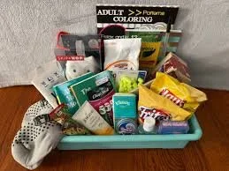 Our care packages are filled with comfort items like snacks, handwritten notes, journals, tea bags, hand sanitizer, tissues, and small reminders that they are not alone.